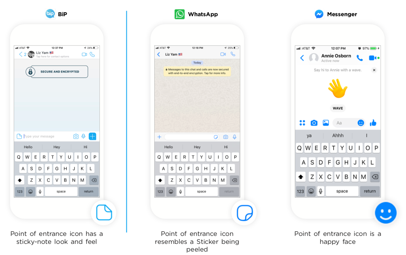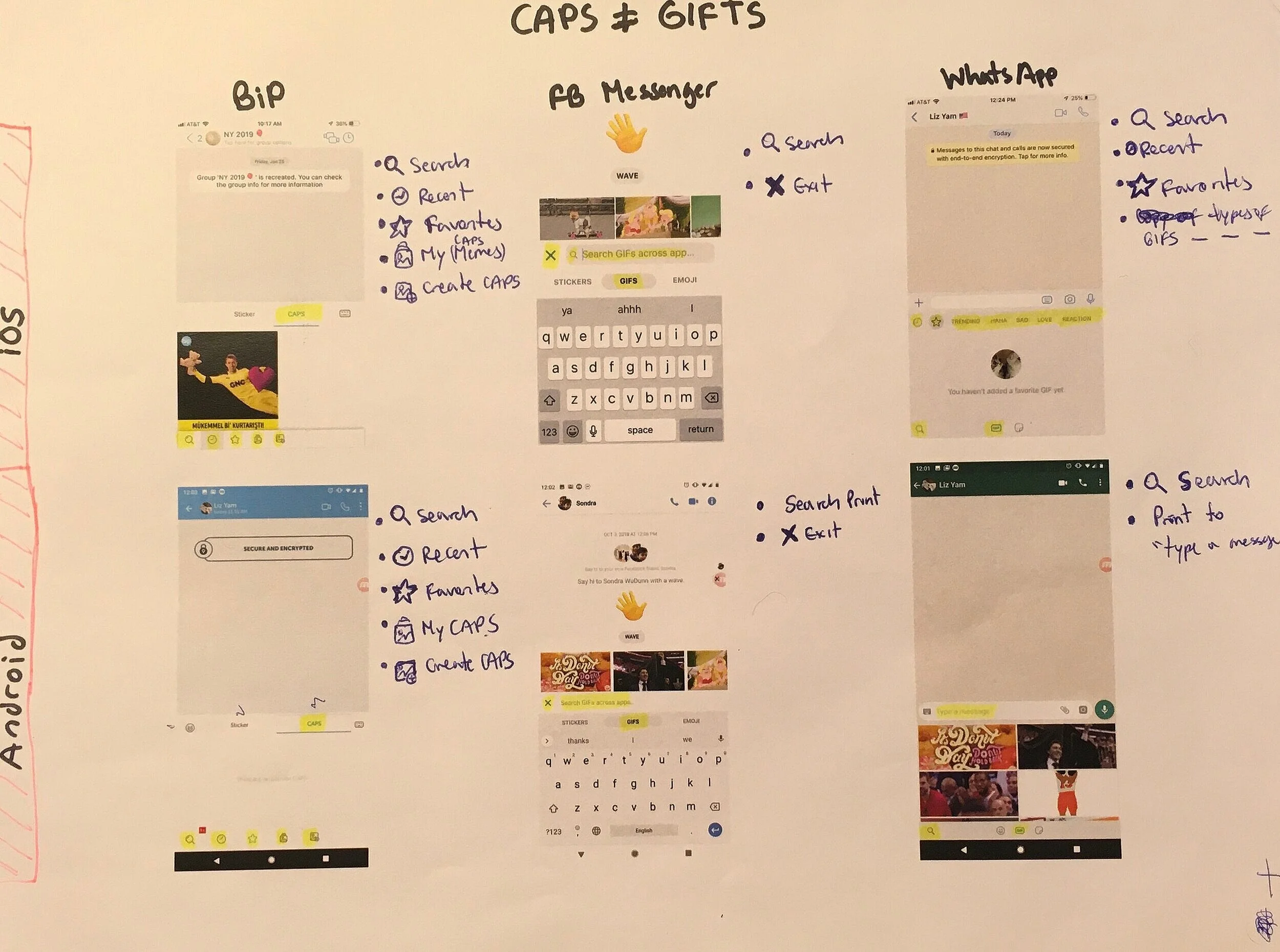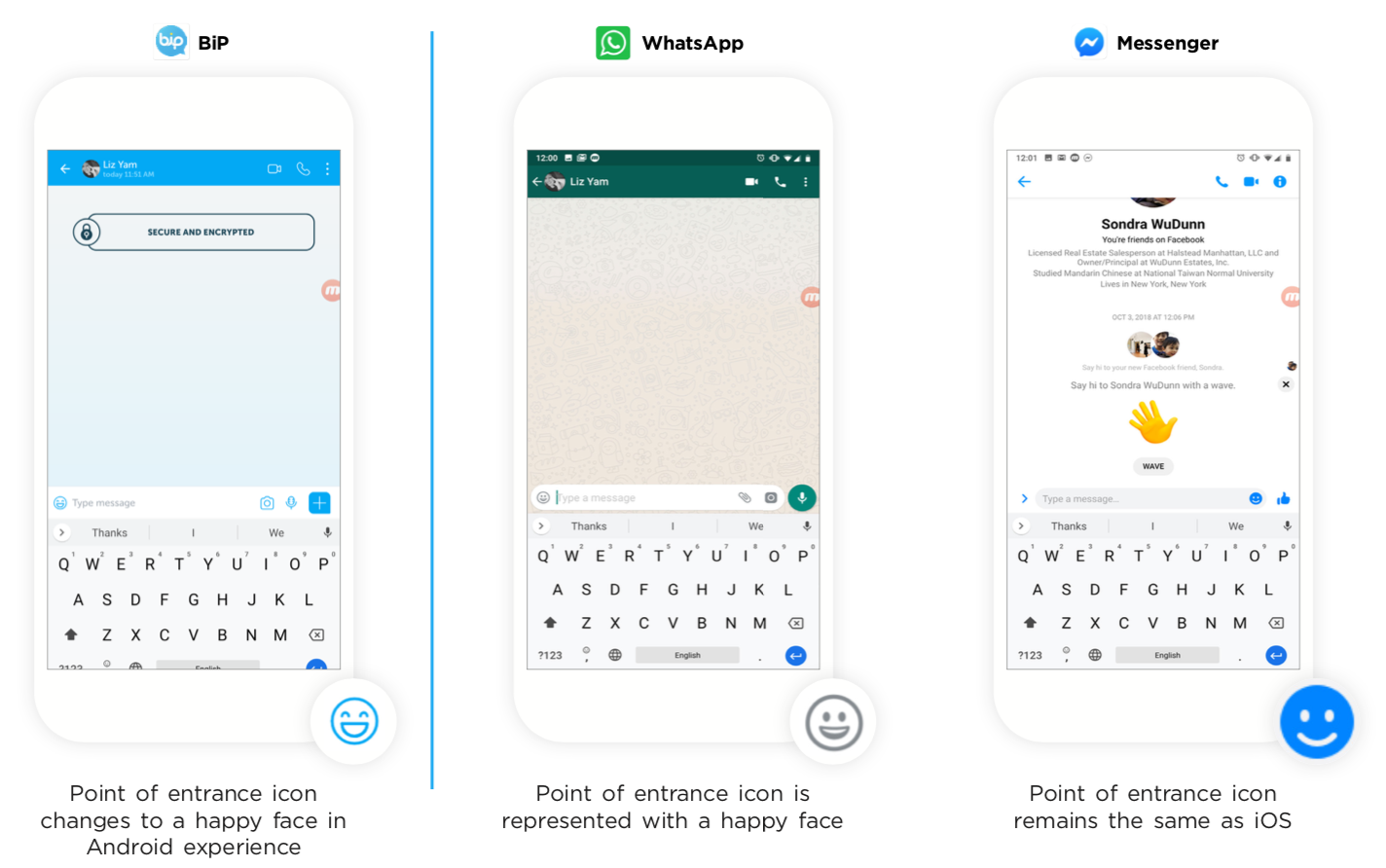We looked at some successful special keyboard competitors such as WhatsApp and Facebook Messenger. These competitors provide similar special keyboard offerings as BiP, such as access to emojis, stickers, and caps (memes). The comparative analysis began with the POE followed by a wider analysis of each part of the keyboard.